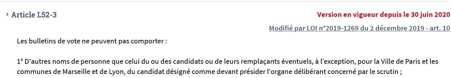 Pour situer les choses, il s'agit de l'OPA que LREM (Renaissance) réalise sur LR (ex UMP) depuis plusieurs années (ce qui est l'une des branches du "en même temps"). Les ententes électorales où on bidouille les investitures n'ont aucun intérêt sur le plan juridique. C'est seulement sur le plan factuel que l'histoire éclaire. En effet, la candidate convertie et fraîchement investie LREM/Ensemble/Renaissance, a entendu rappeler que c'était elle qui avait l'onction dudit parti. Elle a entendu le rappeler jusque dans les bureaux de vote en inscrivant "E. MACRON" sur son bulletin de vote.