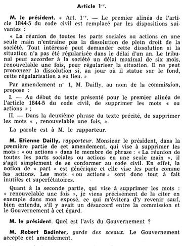 Etienne Dailly fut un grand et réputé législateur : cela ne simplifie pas le commentaire à réaliser. Quoique Robert Badinter, en droit des affaires...